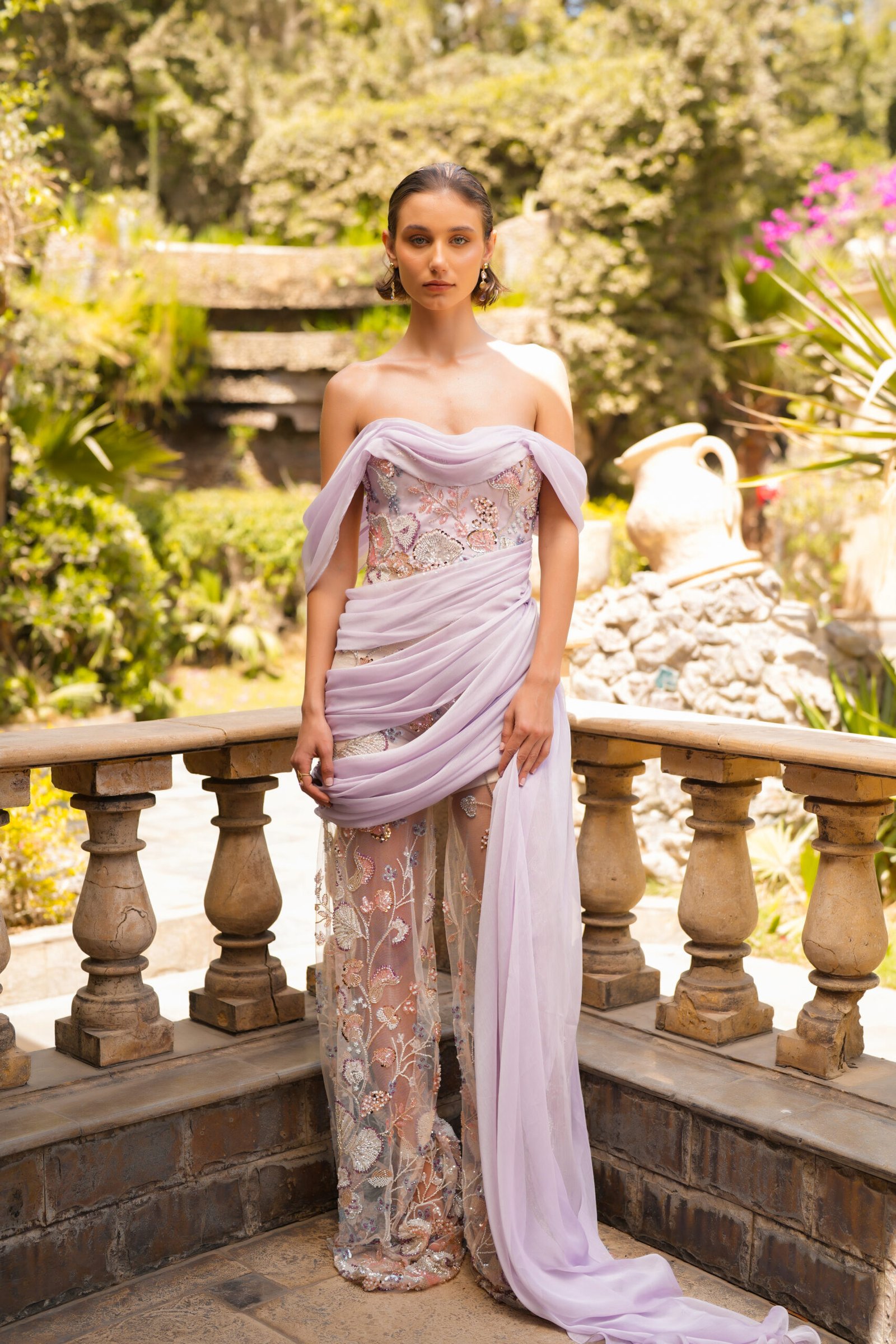 Fluid silhouettes, delicate textures, and light tones evolve into structured shapes, dramatic volumes, and deeper hues symbolizing growth, resilience, and inner strength. Persephone celebrates the balance between innocence and power, portraying a woman who embraces both light and shadow